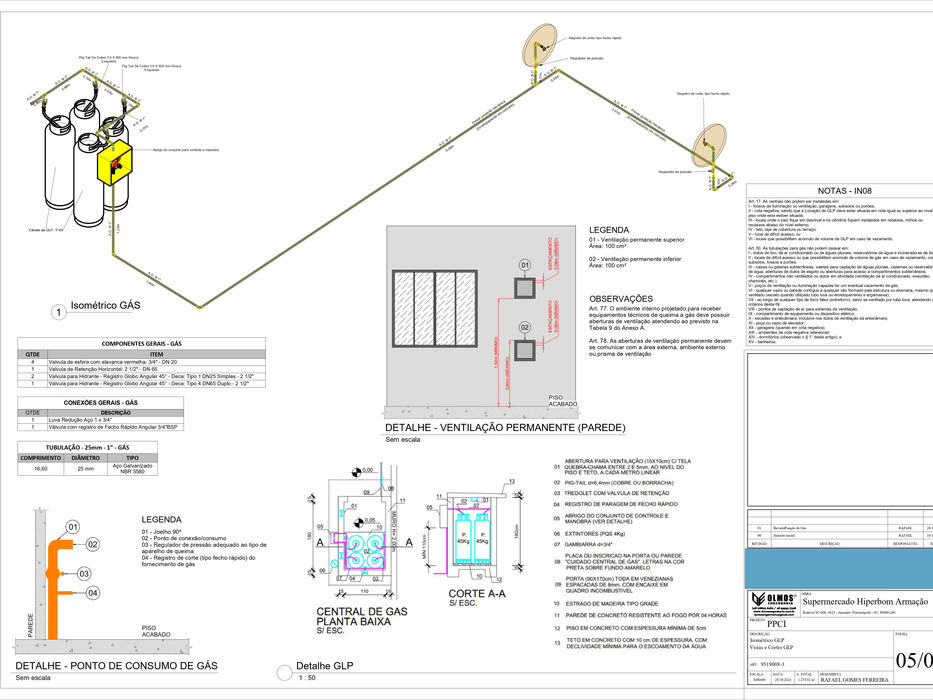 Projeto: Planta de locação de todas as sinalizações e equipamentos para prevenção de incêndio, Quantitativo de materiais.